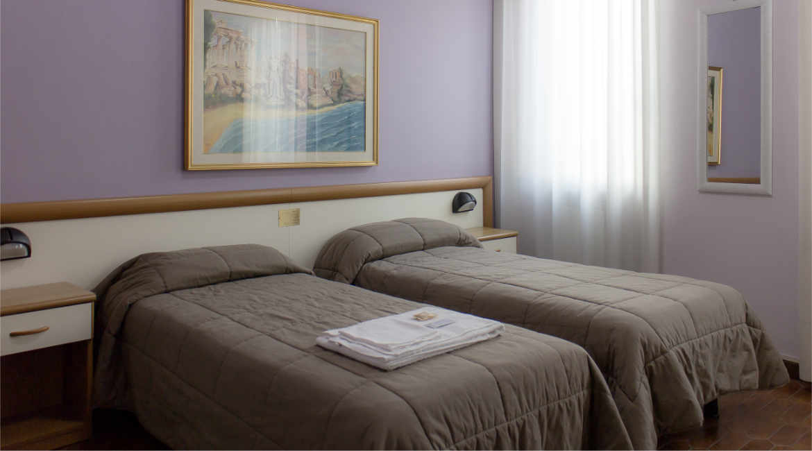 Camera doppia per due persone, arredata in modo semplice e grazioso. Possibilità di un letto aggiuntivo su richiesta.
