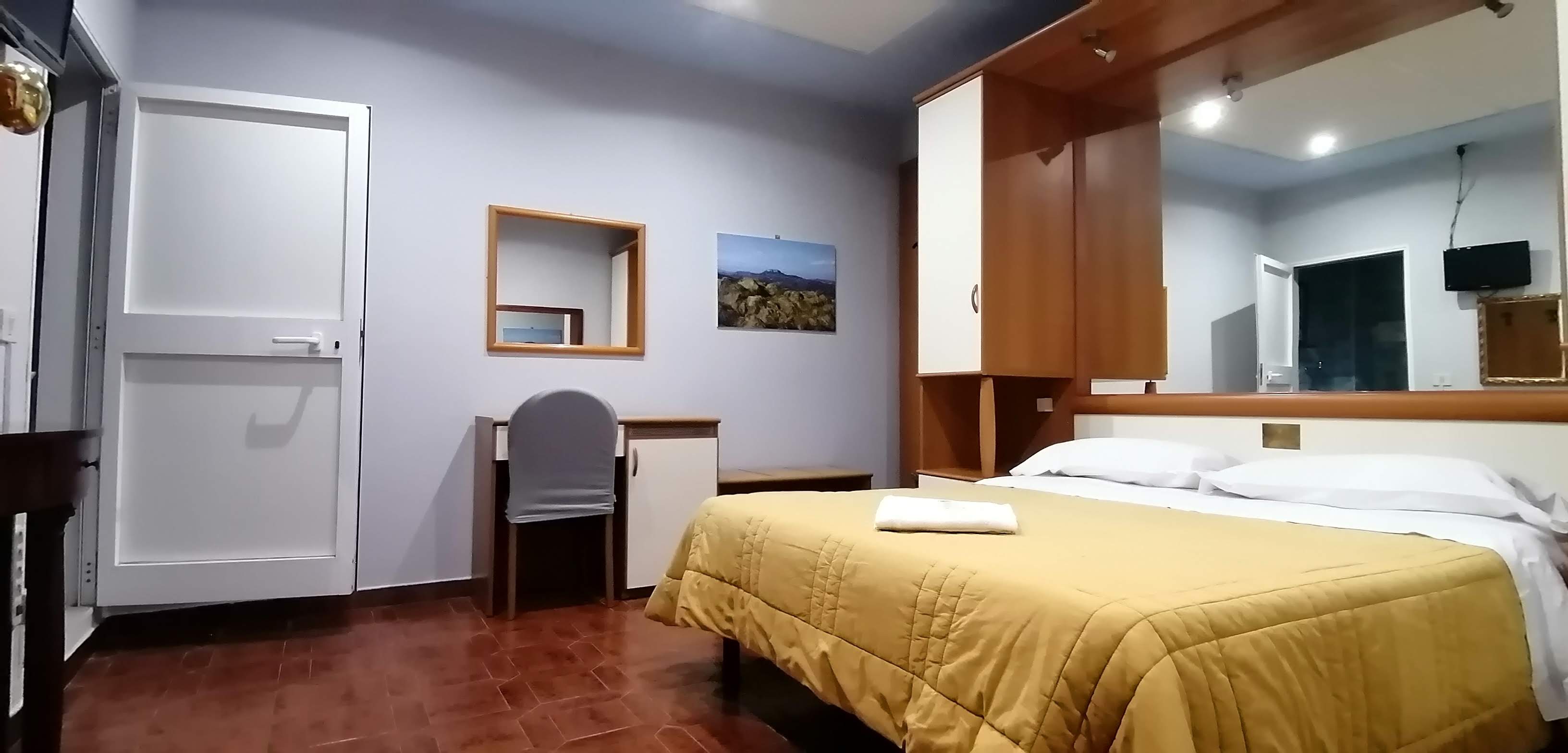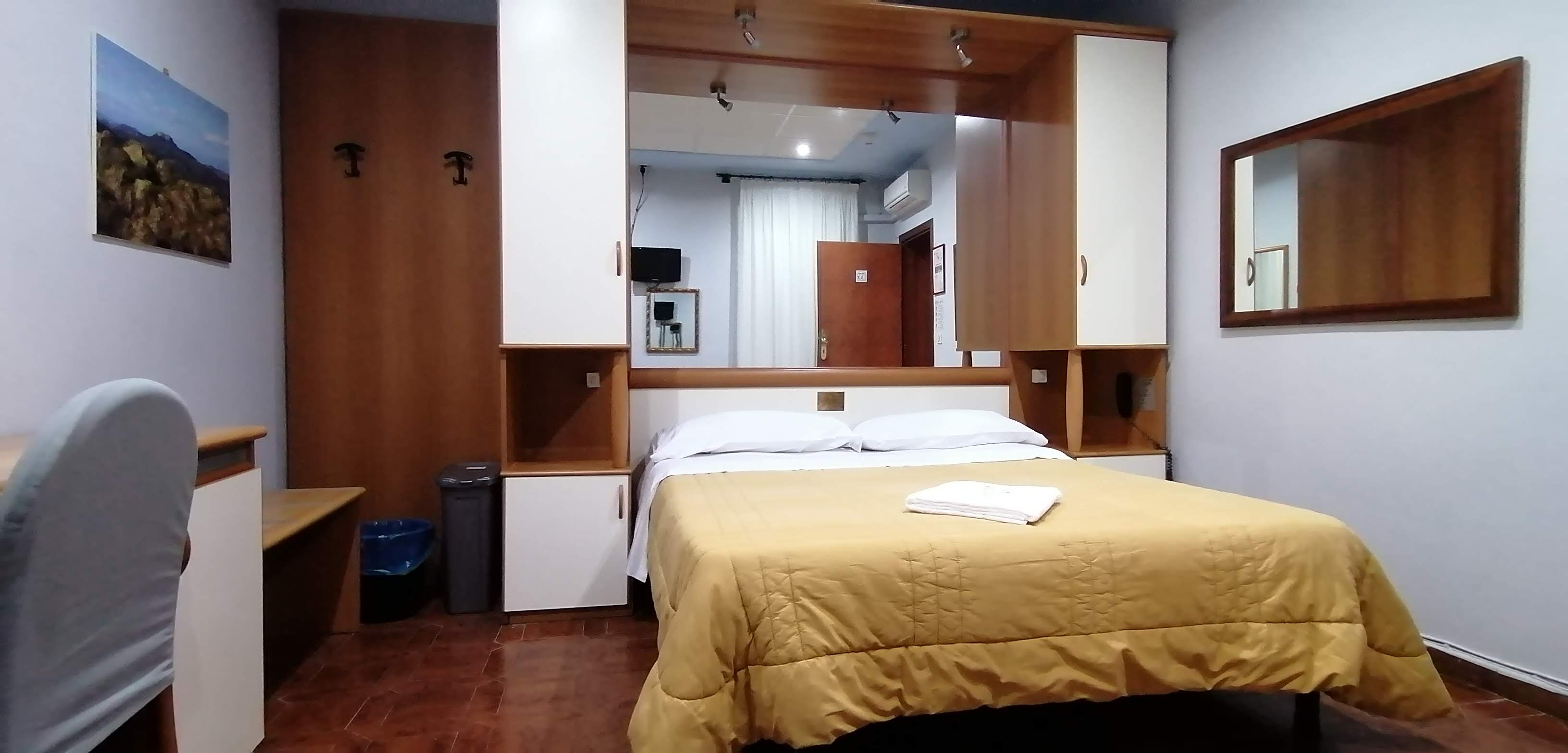 Camera matrimoniale economy per due persone, arredata in modo semplice e grazioso.
