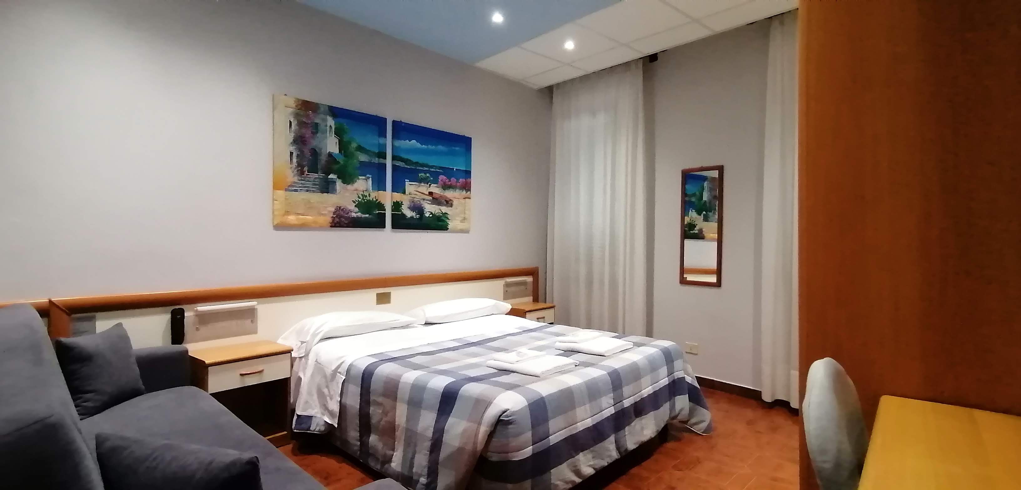 Camera matrimoniale per due persone, arredata in modo semplice e grazioso. Possibilità di un letto aggiuntivo su richiesta.